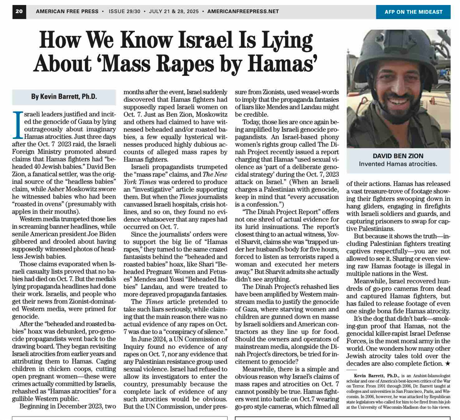 The Dinah Project’s rehashed lies have been amplified by Western mainstream media to justify the genocide of Gaza, where starving women and children are gunned down en masse by Israeli soldiers and American contractors as they line up for food. Should the owners and operators of mainstream media, alongside the Dinah Project’s directors, be tried for incitement to genocide?