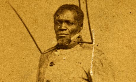 A mine of horrors … an albumen print from 1863, taken by Myron H Kimball of New York, shows Wilson Chinn exhibiting instruments of torture. Photograph: Greg French