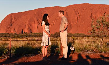 Catherine, Duchess of Cambridge and Prince William pose in front of Uluru. Photograph: Pool/Getty Images