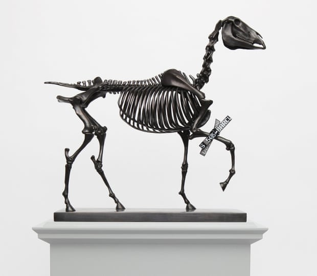 Nearly all of his work primarily draws on its location, and he says Gift Horse was always going to include some reference to the City of London as well as an oblique reference to Adam Smith’s “invisible hand of the market”. “Then the more I thought and learned about the space, including the fact that an equestrian statue was originally meant to be on the plinth” – of William IV, but the money ran out before it was completed in 1840 – “I wanted to do something with a horse. But to really speak about what is going on these days it had to be a skeleton and so I started to do some research.” He was directed towards George Stubbs’s 1766 book, The Anatomy of the Horse. “I knew Stubbs from the Tate gallery and other places, but I didn’t know he had dissected horses and made these engravings. That was a great revelation. And, of course, he is in the National Gallery with the painting Whistlejacket, and the work began to come together.”