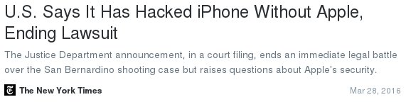 "Please remember that government argued for months that this was impossible, despite expert consensus." —Edward SnowdenThe case that became known as Apple vs. FBI, which pitched digital privacy and civil liberties advocates against the federal government, created an international stir as Apple challenged a court ruling demanding that it create code that would allow federal agents to get inside the locked phone of Syed Farook, who along with his wife killed 14 people and wounded 22 others during a workplace shooting in December.