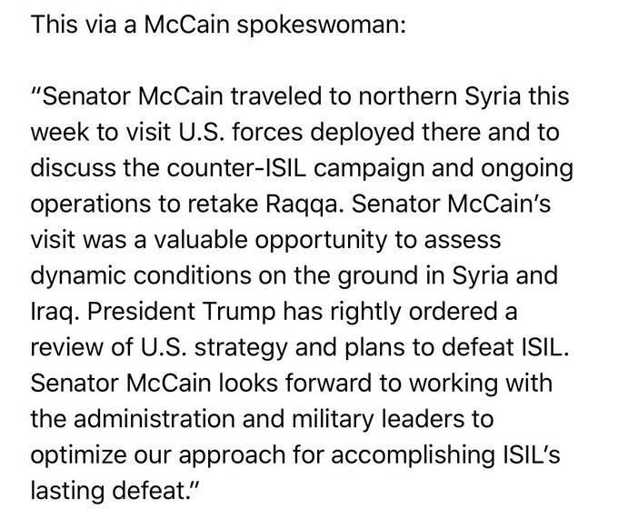 Spox confirms: @SenJohnMcCain travelled to Syria this week:
