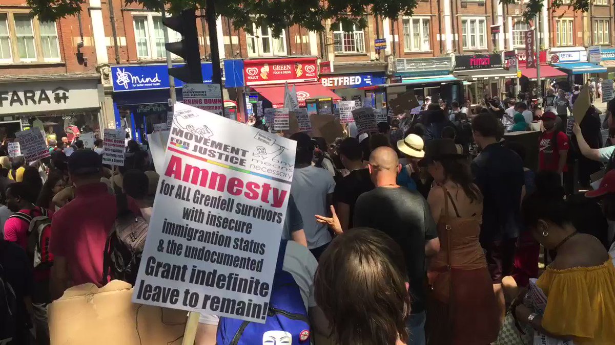 One protest organized by the Movement for Justice By Any Means Necessary (MJF), will demand local housing for the displaced residents of Grenfell Tower and for all residents who do not have immigration papers to be given a permanent right to remain in the UK.