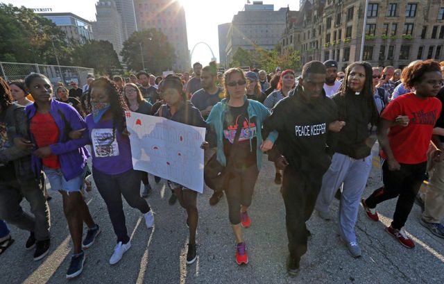 St. Louis Mayor Lyda Krewson told reporters Monday morning that “the days have been calm and the nights have been destructive” for three straight days. She called that pattern “unacceptable” and warned “destruction cannot be tolerated.” The Democratic mayor also tweeted, “Thank you to police & first responders for the outstanding job you have been doing.”