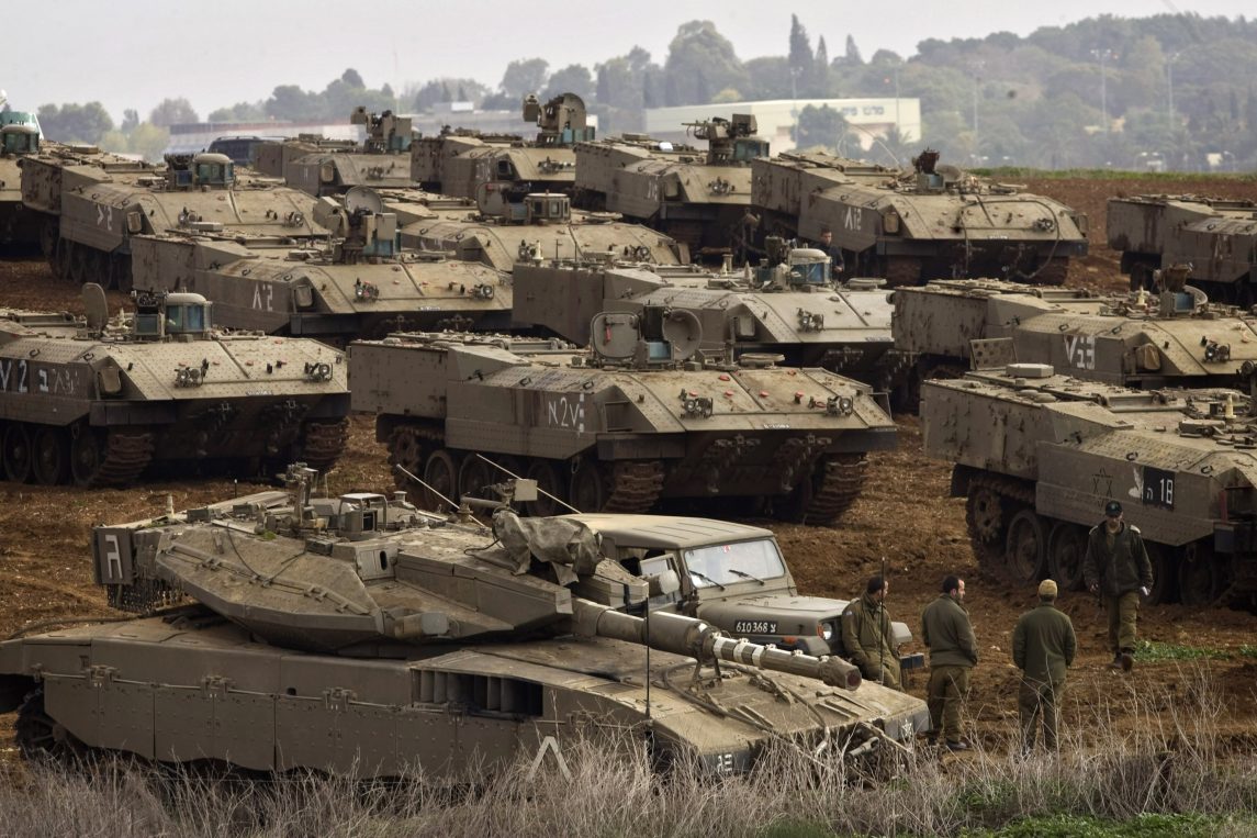 Israeli tanks are seen near Israel’s border with the Gaza Strip, in southern Israel, Dec. 29, 2008 as Israel widened its deadliest-ever offensive against Gaza targeting homes, tunnels and government buildings. AP/Sebastian Scheiner)