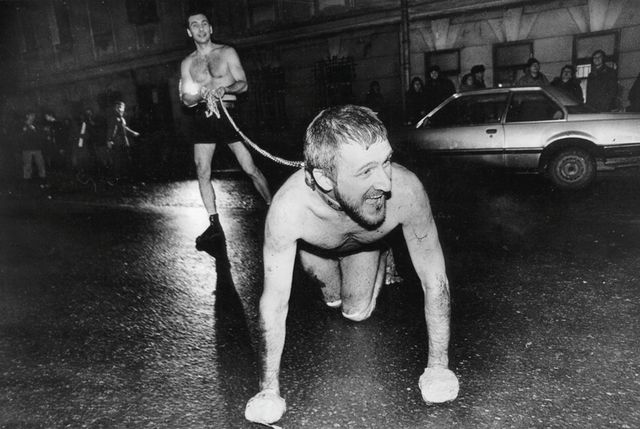 Speaking of his art in 2016, Kulik declared his contempt for any thoughtful progressive response to the Russian tragedy with the retort, “All that is left is the body, which actually never belonged to you. And artists, the first actionists of the 1990s, offered the body, the naked body of a naked person, in the middle of the wild city. It is a powerful image: out of all those endless collectivist myths, endless crowds of the willing and unwilling, groups, bands, and parties a person is set apart, an individual with nothing and no one behind him. He is alone against all, but he is fighting. He simply says: ‘I am! Here I am, I am art!’”