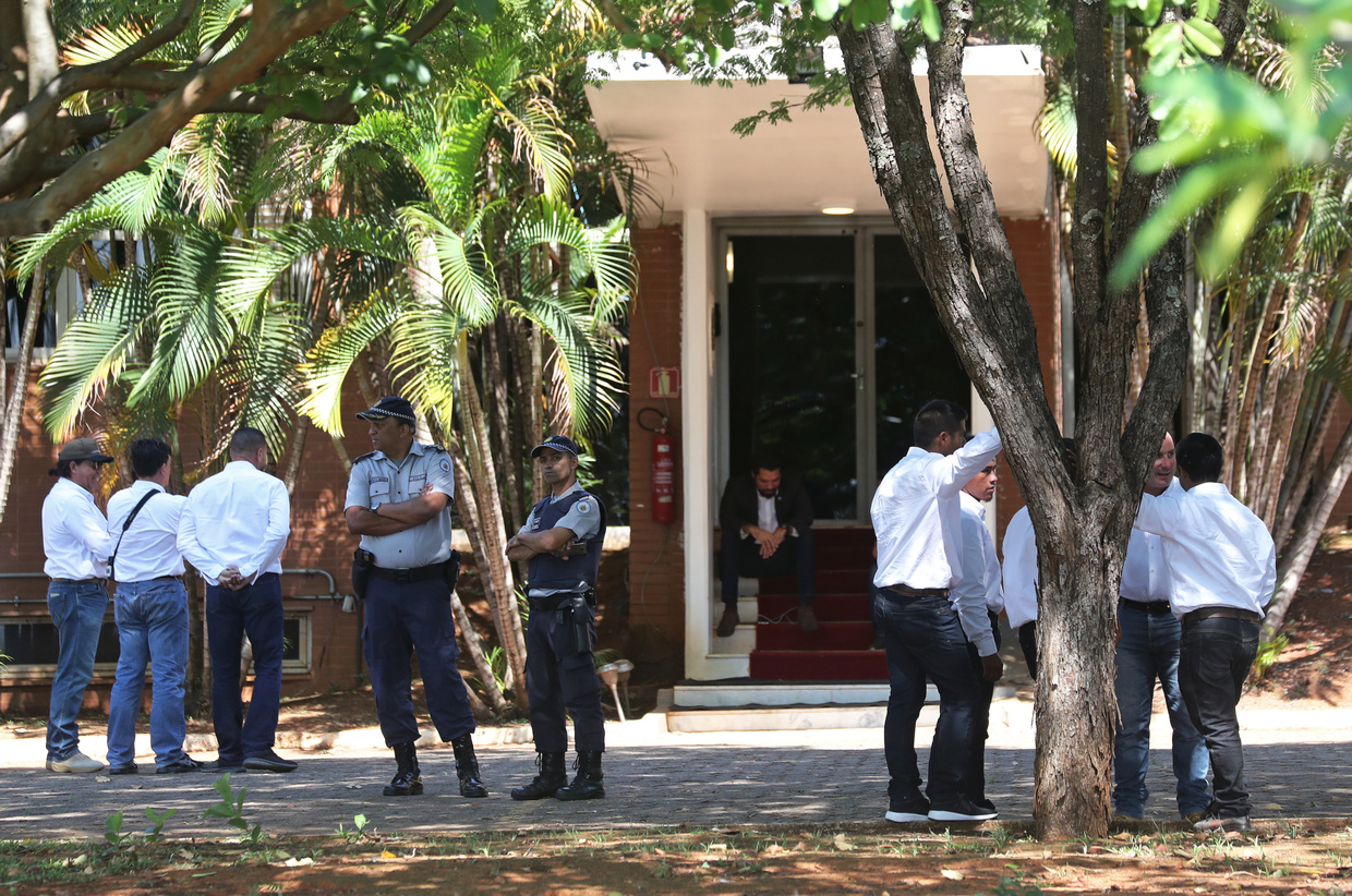 Brazilian police who responded to calls and who are outside the embassy cannot take action because the embassy is foreign territory, the Mídia Ninja journalists’ collective reported.