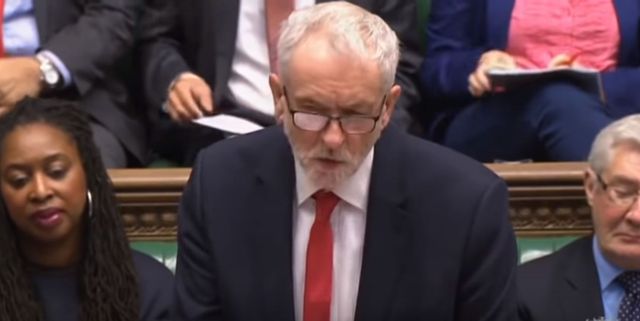 Corbyn speaking in Parliament yesterday at Prime Minister's Questions