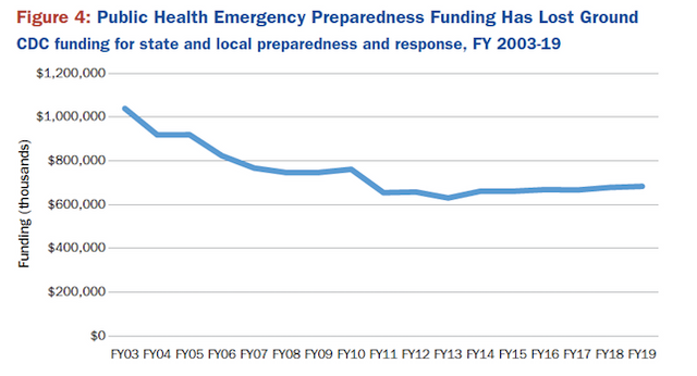 While Cuomo and de Blasio, both Democratic Party politicians, seek to shift all the blame for the unfolding catastrophe on the Trump administration, the truth is that savage cuts to social spending and especially health care have been a decade-long, bipartisan policy that is directly contributing to both the spread of the disease and a much higher than necessary mortality. Spending for the CDC Public Health Emergency Preparedness Funding, which covers the preparation to fight outbreaks of infectious diseases like Ebola or COVID-19, has declined dramatically under both Republican and Democratic administrations since 2003.