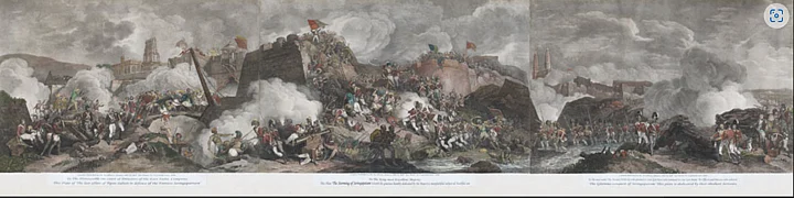 ‘The Storming of Seringapatna’ is said to have been painted by Porter at a furious pace, in just two months, and a shilling was charged for every viewing at the Lyceum Theatre in London. The German poet Goethe is said to have sneered at the idea of the panorama art as low-brow and remarked that “a panorama of Tipu Sultan’s terrible end cannot have delighted anyone but those who took part in the plundering.”