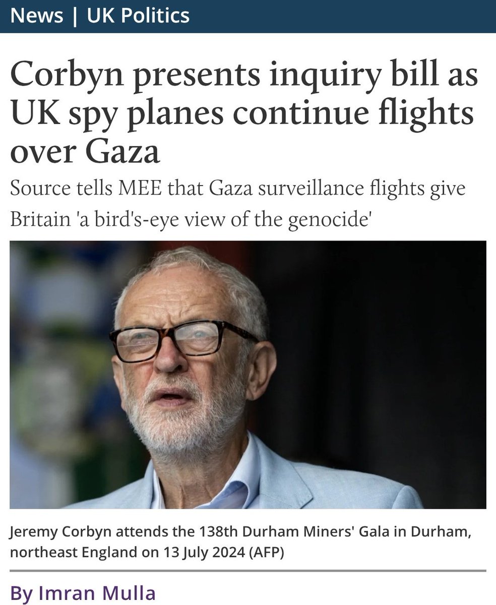 A source with knowledge of British surveillance capabilities in the Middle East told me that surveillance flights over Gaza give Britain "a bird's-eye view of the genocide".